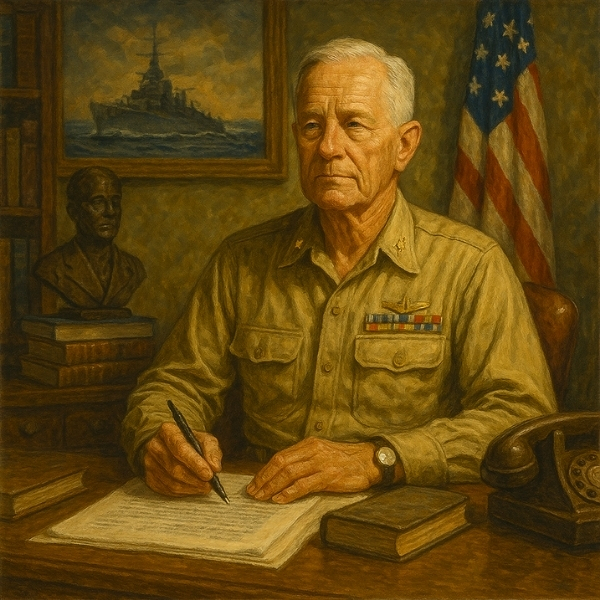 Nimitz valued duty, discipline, humility, and quiet resolve. He believed in empowering his officers, promoting innovation, and leading by example. A modest man with great intellect, he placed country above ego and saw military service as a sacred trust. He held deep respect for both the burden of command and the human cost of war, striving for decisive victory while minimizing unnecessary suffering.
